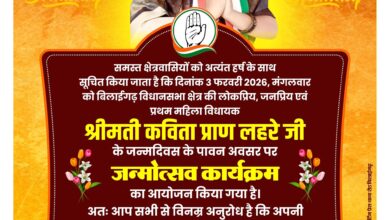विधायक कविता प्राण लहरे का जन्मदिवस कार्यक्रम: 3 फरवरी को कोसमकुण्डा में जनमोत्सव का आयोजन