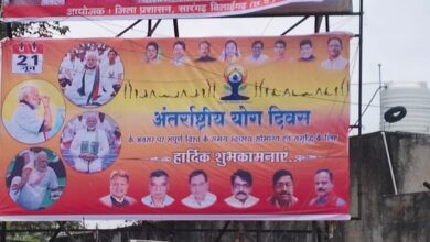 सारंगढ़ । नगर के मुख्य मार्ग में बड़े-बड़े होल्डिंग पर अंतर्राष्ट्रीय योग दिवस की हार्दिक शुभकामना का बैनर टांगा गया…