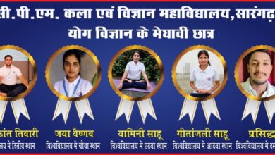 सी पी एम कला एवं विज्ञान महाविद्यालय सारंगढ़ के योग विज्ञान के विद्यार्थियों ने प्रवीण्य सूची मे स्थान दर्ज कर सारंगढ़ क्षेत्र को किया गौरवान्वित