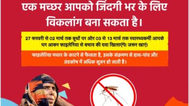 फाइलेरिया उन्मूलन के लिए 27 फरवरी से 13 मार्च तक होगा सामूहिक दवा सेवन