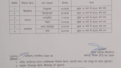 सारंगढ़ बिलाईगढ़, 6 अप्रैल 2025/पंचायत और नगरीय निकाय चुनाव के बाद जिले के नागरिकों के समस्याओं, मांग, शिकायत के निवारण…