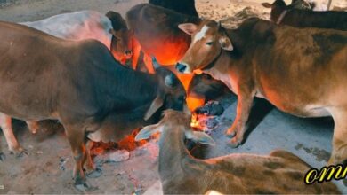 गौमाता भी लें रही आग का सहारा ठंड से बचने