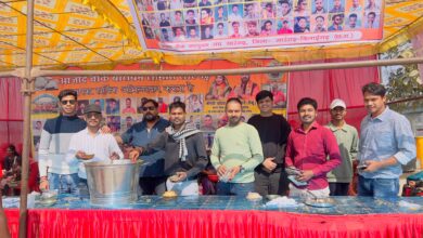 नाथलदाई मंदिर परिसर में खिचड़ी की व्यवस्था आजाद चौक द्वारा की गई