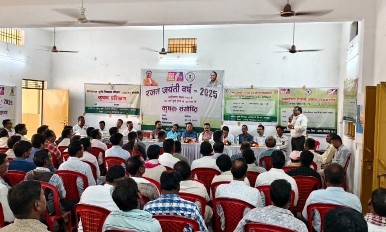 सारंगढ़ बिलाईगढ़, 23 अक्टूबर 2025/ राज्य स्थापना पर रजत जयंती के उपलक्ष्य में एक्सटेंशन रिफार्म आत्मा योजनांतर्गत कृषक संगोष्ठी का आयोजन पटेल (मरार) धर्मशाला सारंगढ में आयोजित किया गया।