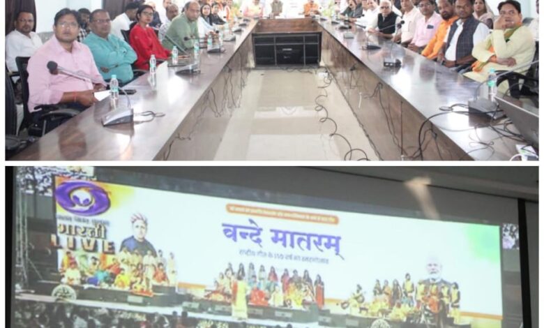 अतिथि जगन्नाथ पाणीग्राही ने कहा कि सम्पूर्ण वन्दे मातरम् गीत में हिन्दू देवी देवताओं का नाम था। अंग्रेजो ने मोहम्मद अली जिन्ना को भड़काकर राष्ट्रीय गीत से हिंदू देवी देवताओं के नाम को अलग कराकर राष्ट्रीय गीत को संक्षिप्त किया गया। अतिथि संजय भूषण पांडेय ने कहा कि अंग्रेजो ने हमारे देश के लोगों के साथ मिलकर हिन्दू धर्म, भारतीय धर्म और संस्कृति को कम करने के लिए कार्य किया, आज भारतीय धर्म और संस्कृति को बढ़ाएं। कलेक्टर डॉ कन्नौजे ने कहा कि वन्दे मातरम एक मन्त्र ह, जिसके सुनने से उत्साह और ऊर्जा का संचार होता है। जनप्रतिनिधि, अधिकारी कर्मचारी हम सब अपने दायित्वों का पालन कर विकसित भारत 2047 के लक्ष्य को पूरा करने में देश को सहयोग करें। इस अवसर पर जिले के अधिकारीगण उपस्थित थे।