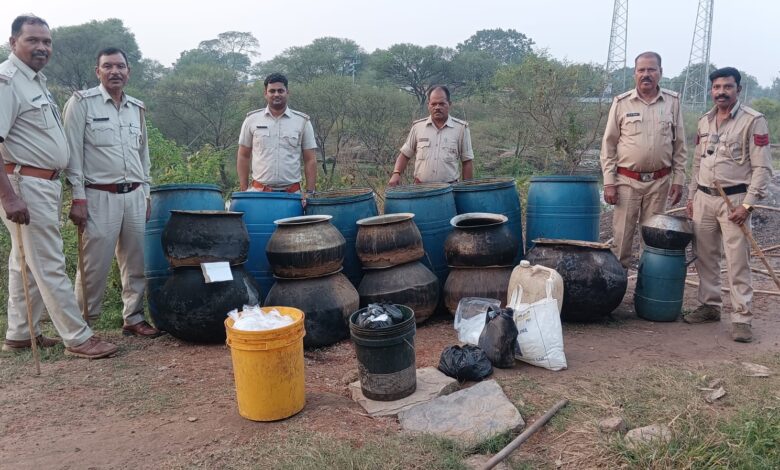 सूचना की पुष्टि होने पर टीम के साथ बताए गए स्थान नाले के पास पहुंचे वहा पर मदिरा शराब बनाने हेतु भट्टी के साथ मदिरा पैक करने हेतु पॉलीथिन के पाउच, पॉलीथिन की छोटी छोटी 200 नग झिल्लियों प्रत्येक में भरी 200-200 मिलीलीटर ,02 नग सफेद रंग के जरीकेन में भरा 20-20 लीटर एवं 01 नीले रंग के जरीकेन में भरा 30 लीटर इस तरह कुल 110 लीटर कच्ची महुआ शराब तथा 07 नग बड़े नीले रंग के ड्रम में भरे महुआ शराब बनाने के लिए सड़ाकर बनाया गया महुआ लाहन प्रत्येक में भरा 200-200 किलोग्राम जिसकी कुल मात्रा लगभग 1400 किलोग्राम है, को जब्त किया गया। कच्ची महुआ शराब को कब्जा आबकारी लिया गया एवम विधिवत रूप से महुआ लाहन का नष्टीकरण किया गया है और अज्ञात आरोपी के विरुद्ध छत्तीसगढ़ आबकारी अधिनियम धारा 34(1)(क) (च)34(2) का , प्रकरण कायम कर विवेचना में लिया गया है आरोपियों की पतासाजी की जा रही है।