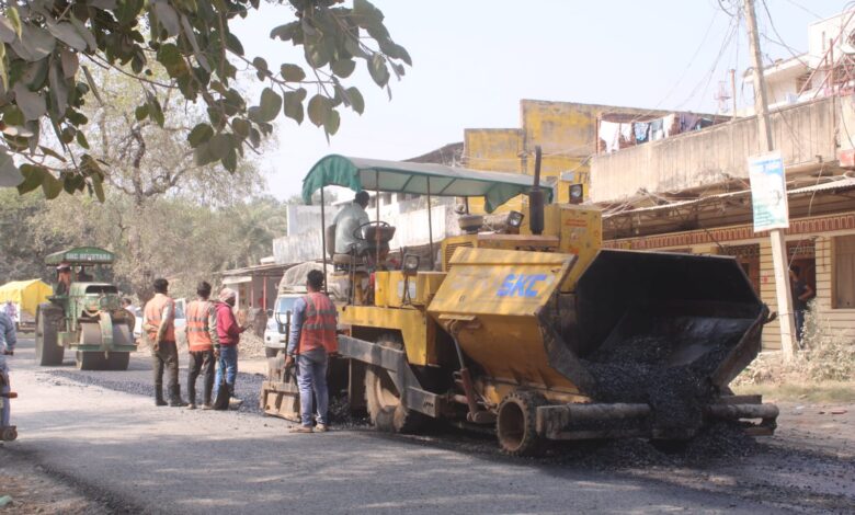 राष्ट्रीय राजमार्ग 130 बी में सारंगढ़ से बलौदाबाजार तक चल रहा सड़क मरम्मत