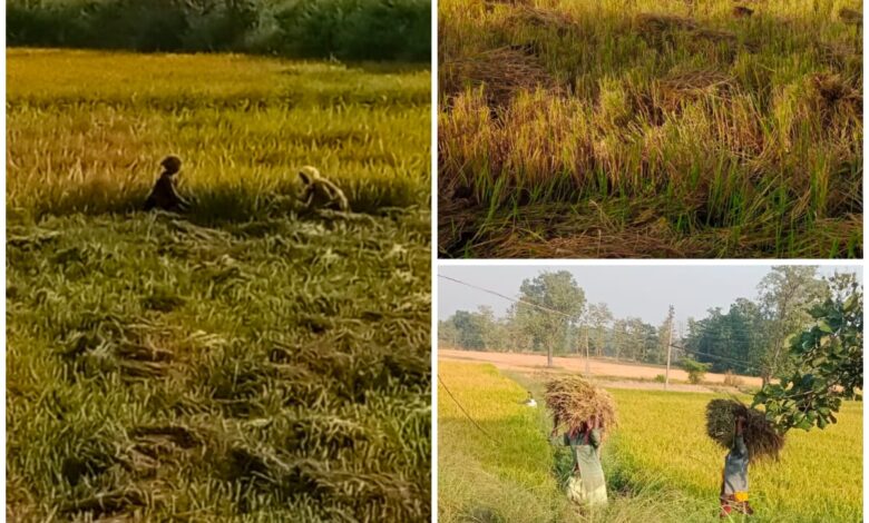 बिलाईगढ़ वलांचल क्षेत्र के किसानों को बेमौसम बारिश होने से, दोहरी खर्च का सामना करना पड़ रहा है, बे मौसम बारिश होने से खेत में पानी भर गया है, खड़े फसल पानी के कारण गिर गया है, जहां किसान का हार्वेस्टर एवं चैन हार्वेस्टर दोनों ही नहीं चल पा रहा है, जिसके कारण किसानों को मजदूरों के माध्यम से धान की कटाई और ढूलाई का काम कराया जा रहा है, जो किसानों को दोगुनी खर्च के लिए बाध्य कर रहा है,