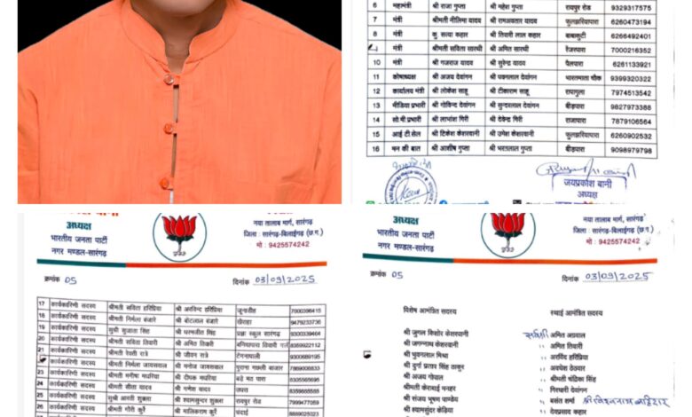 सारंगढ़-बिलाईगढ़। भारतीय जनता पार्टी के सारंगढ़ नगर मंडल की बहुप्रतीक्षित कार्यकारिणी की आज घोषणा कर दी गई, आज भाजपा के जिलाध्यक्ष ज्योति पटेल ने प्रदेश संगठन की सहमति से सूची जारी कर दिये हैं