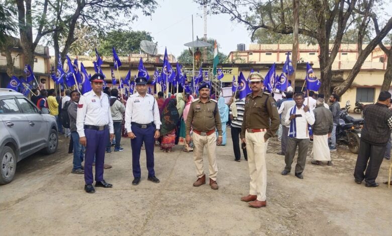 सारंगढ़। संविधान दिवस के अवसर पर भीम आर्मी द्वारा सैकड़ो की संख्या में शांति पूर्ण रैली निकाली । रैली शहर के मुख्य मार्गों से होते हुए जनपत पंचायत कार्यालय पहुंची जहां बाबा साहब डॉ. भीमराव अंबेडकर के आदमकद प्रतिमा पर भीम आर्मी कार्यकर्ताओं ने बाबा साहब की प्रतिमा पर पुष्पहार अर्पित कर उन्हें नमन किया। डॉ अम्बेडकर अमर रहें , जय भीम का गगनचुंबी नारें लगायें जा रहें थे । इस रैली में युवा युवती महिला पुरुष और बच्चे शामिल रहें । कार्यक्रम के दौरान थानेदार कामिल हक अपनी टीम के साथ पूरे मार्ग पर जुलूस के साथ चलकर शांति एवं व्यवस्था बनाए रखने में महत्वपूर्ण भूमिका निभाई। प्रशासनिक निगरानी में यह आयोजन शांति और गरिमा के साथ संपन्न हुआ।