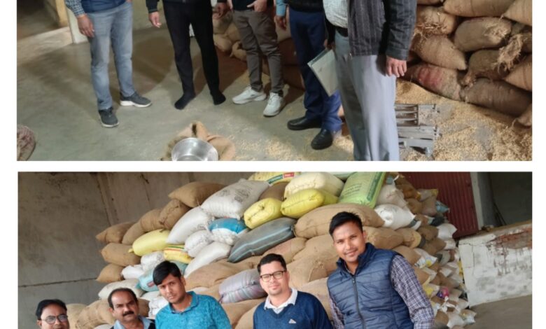 सारंगढ़ बिलाईगढ़, 1 दिसंबर 2025/ कलेक्टर डॉ संजय कन्नोजे के निर्देश पर नायब तहसीलदार मोहन साहू, पुष्पेंद्र राज, कृषि उपज मंडी बरमकेला के निरीक्षक जे पी नन्दे के संयुक्त जांच दल द्वारा बरमकेला में महेंद्र अग्रवाल के परिसर से 282 बोरा, 112.80 क्विंटल और संदीप अग्रवाल के परिसर से 270 बोरा वजन 108 क्विंटल धान को मंडी अधिनियम के तहत अवैध धान भंडारण जप्त कर कार्यवाही किया गया।