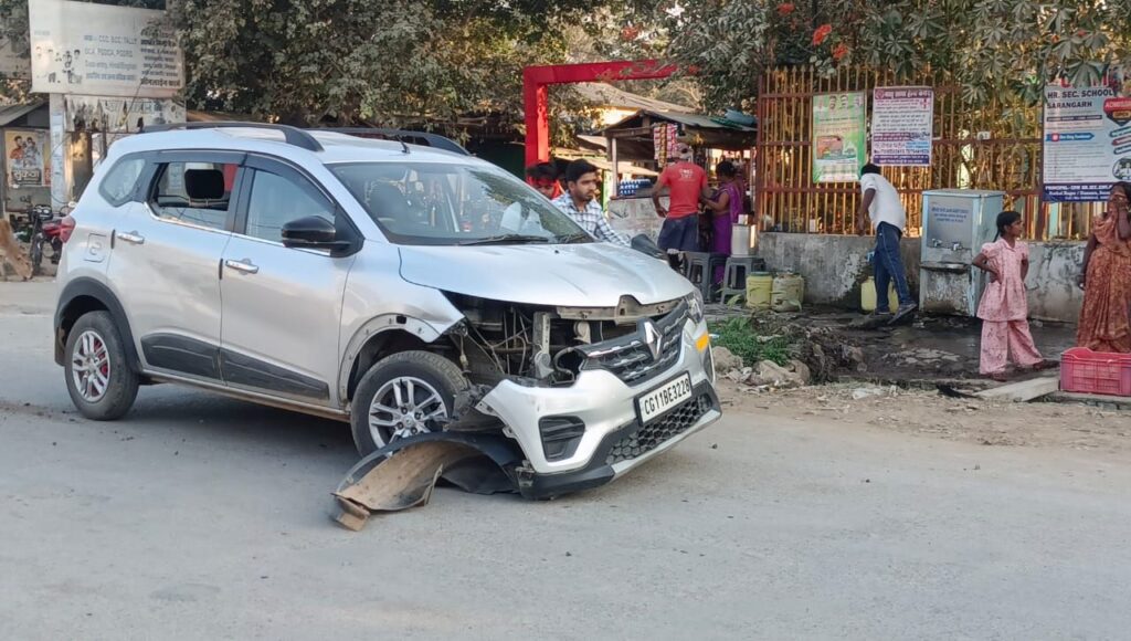 सारंगढ़ में भीषण सड़क दुर्घटना, कार बुरी तरह क्षतिग्रस्त