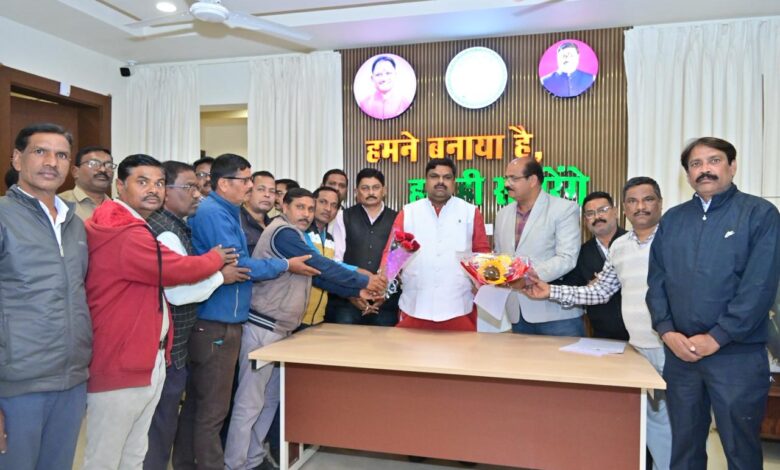 सारंगढ़ । छग विद्यालय शिक्षक कर्मचारी संघ के प्रांताध्यक्ष संजय तिवारी के नेतृत्व में बिलाईगढ़ ,सारंगढ़ के शिक्षकों प्रधान पाठकों ने स्कूल शिक्षा मंत्री गजेन्द्र यादव से उनके सरकारी आवास पर मुलाकात कर शिक्षक ई संवर्ग एवं एलबी संवर्ग की संयुक्त डीपीसी करने की मांग की । प्रकाश साहू, बदलूराम पटेल, वीरेंद्र केशरवानी , प्रमोद देवांगन , उमाशंकर वर्मा, पंकज दुबे 22 दिसंबर को हुई केवल एलबी संवर्ग की व्याख्याता पद की डीपीसी को नियम विरुद्ध बताते स्नातकोत्तर प्रा प्रधान पाठक एवं शिक्षक की भी संयुक्त डीपीसी की मांग रखी , मंत्री श्रीयादव ने शिक्षकों के तर्कों को स्वीकार करते हुए सचिव स्कूल शिक्षा को शिक्षक ई संवर्ग की डी पी सी का निर्देश दिया , वही तकनीकी त्यागपत्र , डीएड डिग्री धारी सहायक शिक्षकों प्रधान पाठकों शिक्षकों के लिए ब्रिज कोर्स कराए जाने संघ के आग्रह पर सचिव स्कूल शिक्षा को प्रस्ताव बनाने का निर्देश है । पंकज दुबे ने बताया कि – संघ पदाधिकारियों ने मंत्री श्री यादव से व्याख्याता पद बी एड डिग्रीधारी शिक्षकों प्रधान पाठकों एवं एलबी संवर्ग की संयुक्त डीपीसी कर पदोन्नति की बाद रायपुर संभाग की डीएड डिग्री धारी शिक्षकों प्रधान पाठकों एवं एलबी संवर्ग के शिक्षकों की डीपीसी कराए जाने का आग्रह किया है, संघ ने चर्चा के दौरान बताया कि शिक्षकों की पदोन्नति का आज कोई मामला किसी कोर्ट में लंबित नहीं है । केवल डीबी में जाने के आधार पर पदोन्नति से किसी कर्मचारी को नहीं रोका जा सकता ।