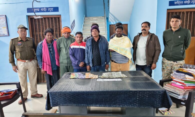 सारंगढ़ । सलीहा थाना द्वारा जुआ खेलते हुए इन जुआड़ीयों को पकड़ा जिसमें संतराम जमीदार पिता धनीराम जमीदार उम्र 47 साल साकिन नगेडी थाना राजादेवरी जिला बलौदा बाजार भांटापारा , खीरसाय साहू पिता समारू लाल साहू उम्र 40 साल साकिन बिलारी थाना सलिहा जिला सारंगढ बिलाईगढ , भुपेश पटेल पिता जगदीश पटेल उम्र 26 साल साकिन देवरूंग थाना राजादेवरी जिला ब बाजार , परमानंद नायक पिता जयंतलाल नायक उम्र 40 साल साकिन सुखरी थाना राजादेवरी जिला ब बाजार , यशवंत पटेल पिता खेमराज पटेल उम्र 28 साल साकिन देवगांव थाना राजादेवरी जिला ब बाजार, महेन्द्र कुमार साहू पिता आनंदराम साहू उम्र 36 साल साकिन रांपागुला थाना सारंगढ जिला सारंगढ बिलाईगढ , विजय कुमार पटेल पिता लकेश्वर पटेल उम्र 51 साल साकिन नालीपानी थाना झारबंद जिला बरगढ उडीसा, केदार सिंग राजपुत पिता बुदमन सिंह राजपुत उम्र 35 साल साकिन केरामुण्डा थाना बसना जिला महासमुंद छ.ग. लक्ष्मीधर साहू पिता स्व. निरंजन साहू उम्र 40 साल साकिन चांदन थाना राजादेवरी जिला ब बाजार पुलिस अधीक्षक अंजनेय वाष्णेय के द्वारा जिले में अवैध जुआ सटटा के कारोबार को अंकुश लगाने हेतु लगातार कार्यवाही करने के निर्देश दिया गया है, अति. पुलिस अधीक्षक श्रीमती निमिषा पांण्डेय, एसडीओपी विजय ठाकुर के मार्गदर्शन पर थाना प्रभारी सलिहा उप निरीक्षक अमृत भार्गव को 10 जनवरी 26 को मुखबिर सूचना मिला कि – ग्राम थरगांव के सागौन प्लाट बंधिया तालाब के पास आम जगह में रूप्ये का दाव लगा कर जुवाडी जुआ खेल रहे है सूचना पर सलिहा पुलिस द्वारा घेराबंदी कर 09 जुआडियों के विरूध्द धारा छ.ग. जुआ (प्रतिषेध) अधिनियम 2022, 3(2) के तहत अपराध दर्ज कर जुआरियों से कुल नगदी रकम 43190/ रूपये एवं 52 पत्ती तास को जप्त कर जुआडियानो के विरूध्द कार्यवाही किया गया है। उक्त कार्यवाही में थाना प्रभारी सलिहा एवं समस्त स्टाफों का विशेष योगदान रहा।