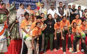 सर्वज्ञ राव बास्केटबाॅल एकेड़मी के खिलाड़ियों से सज्जीत डीपीएस राजनांदगांव की बालिका बास्केटबाॅल टीम ने सी बी एस ई का प्रतिनिधित्व करते हुये जुनियर स्कूल नेशनल बास्केटबॉल प्रतियोगिता का स्वर्ण पदक जीता।