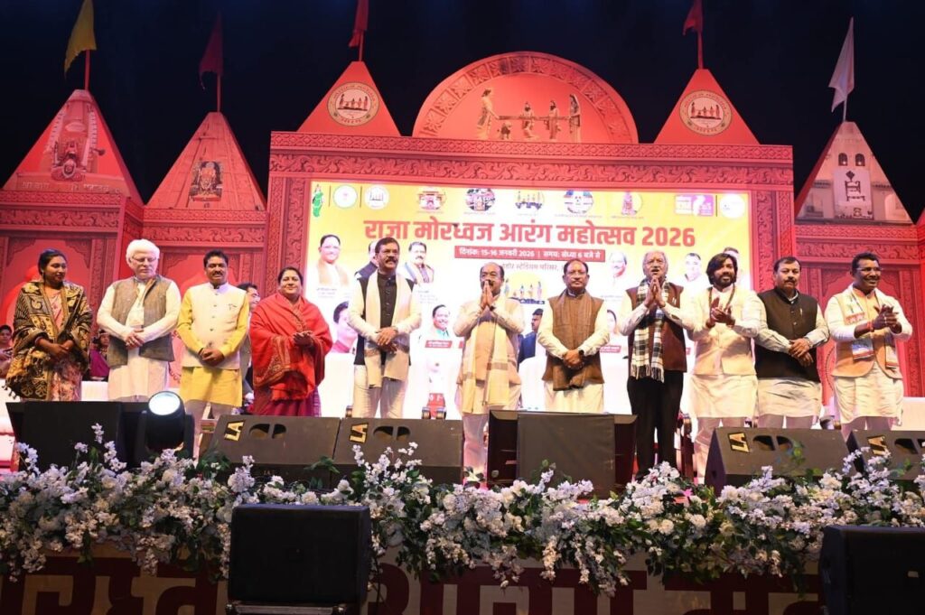 आरंग :– त्याग, तपस्या और धर्मपरायणता के प्रतीक महान राजा मोरध्वज की स्मृति में आयोजित दो दिवसीय राजा मोरध्वज आरंग महोत्सव 2026 का समापन शुक्रवार को श्रद्धा, संस्कृति और साहित्य के संगम के साथ गरिमामय वातावरण में संपन्न हुआ। राजा मोरध्वज केवल इतिहास के पात्र नहीं, बल्कि त्याग, सत्य और जनकल्याण की जीवंत परंपरा हैं। उनका जीवन आज के समय में भी सुशासन, सामाजिक समरसता और राष्ट्रप्रेम का मार्ग दिखाता है। महोत्सव स्थल में आने के पहले मुख्यमंत्री श्री विष्णु देव साय, उप मुख्यमंत्री अरुण साव,आयोजन के संयोजक कैबिनेट मंत्री गुरु खुशवंत साहेब, कैबिनेट मंत्री श्याम बिहारी जायसवाल, सांसद – बृजमोहन अग्रवाल, विजय बघेल, सतनामी समाज के धर्मगुरु बालदास साहेब, कैबिनेट मंत्री दर्जा ध्रुव कुमार मिर्धा, पीठाधीश राजीव लोचन महराज, विधायक – रोहित साहू, मोतीलाल साहू, इंद्र कुमार साहू, आयोग की अध्यक्ष शालिनी राजपूत, डॉ वर्णिका शर्मा,आरंग पालिका अध्यक्ष डॉ संदीप जैन, जनपद अध्यक्ष टाकेश्वरी मुरली साहू सहित तमाम राजनेताओं ने बाबा बागेश्वर मंदिर पहुंचकर बाबा बागेश्वर नाथ बाबा की पूजा अर्चना कर छतीसगढ़ के समृद्धि और खुशहाली की कामना की।