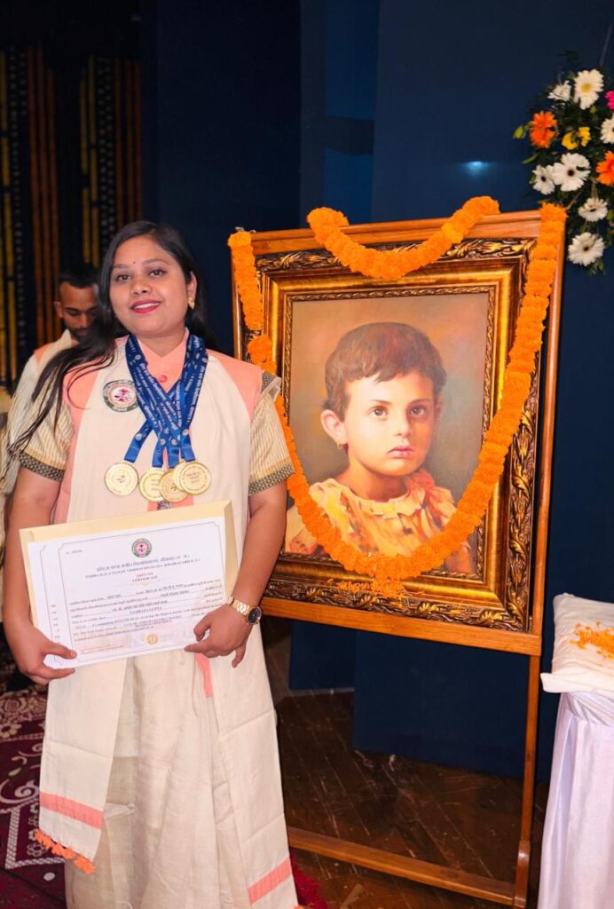 रायगढ़/पुसौर— ग्रामीण परिवेश में पली बढ़ी पुसौर जनपद के टिनमिनी गांव की प्रतिभाशाली,होनहार बेटी नम्रता गुप्ता ने संगीत के क्षेत्र में जिले का नाम रोशन किया है। इंदिरा कला संगीत विश्वविद्यालय खैरागढ़ में 17 वे दीक्षांत समारोह में नम्रता ने एम पी ए गायन में सत्र 2023—24 में सर्वोच्च अंक प्राप्त करने पर राज्यपाल महामहिम रामेन डेका के हाथों 5 स्वर्ण पदक प्राप्त अपने गांव , अंचल के साथ जिले का गौरव बढ़ाया है।