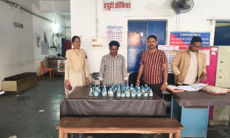 विदित हो कि- जिसमे एक व्यक्ति को मोटर सायकल फैशन प्रो क्रमांक- सीजी13 यूएफ 9103 मे पकड़ा गया । जिसका नाम मोहन लाल चैहान पिता भगवतिया चैहान उम्र 46 वर्ष सा0 दानसरा थाना सारंगढ़ का निवासी होना पता चला जिसके मोटर सायकल में रखे प्लास्टीक थैला के अंदर 45 पाव देशी मदिरा शराब 180 एमएल वाली शीशी जुमला-8.100 लीटर कीमती 3600 रू का पेश किया एवं परिवहन में उपयोग मोटर सायकल को हमराह स्टाफ एवं गवाहान के समक्ष जप्त कर आरोपी को विधिवत् गिरफ्तार कर न्यायिक रिमाण्ड पर जेल भेजा गया। उक्त कार्यवाही में निरीक्षक थाना प्रभारी कामिल हक, मप्र आर77 शारदा राठौर, धनेश्वर उरांव, आ. पुरूषोत्तम राठौर, मुकेश चंद्रा, भरतभूषण वर्मा, मआ शंकुतला जायसवाल एवं समस्त स्टाफ की प्रमुख भूमिका रही।