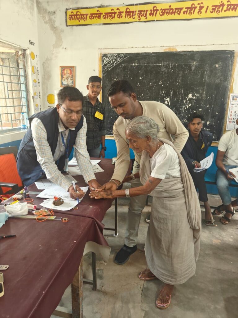 सारंगढ़ बिलाईगढ़, 23 फरवरी 2025/ सारंगढ़ ब्लॉक में त्रिस्तरीय पंचायत का अंतिम चरण चुनाव बुजुर्ग युवा और महिला मतदाताओं के उत्साहपूर्वक मतदान के साथ संपन्न हुआ। महिला एवं पुरुष मतदाताओं ने लगभग समान मताधिकार का उपयोग किया। सारंगढ़ ब्लॉक के 377 मतदान केंद्रों में लम्बी लम्बी कतार नजर आई। कड़ी सुरक्षा व्यवस्था के बीच मतदान हुआ। दिव्यांग और बुजुर्ग मतदाता को गोद में उठाकर ले जाया गया। मतदान केंद्र में व्हील चेयर की व्यवस्था थी। इस चुनाव से सारंगढ़ ब्लॉक में जिला पंचायत के 5 सदस्य, जनपद पंचायत के 25 सदस्य और पंच सरपंच निर्वाचित होंगे। कलेक्टर धर्मेश कुमार साहू और पुलिस अधीक्षक पुष्कर शर्मा ने सारंगढ़ से कोसीर रोड के गांवों, सिंघनपुर, जसपुर क्षेत्र और कनकबीरा क्षेत्र के मतदान केंद्रों के निर्वाचन व्यवस्था और मतदान कार्यों का अवलोकन किया।