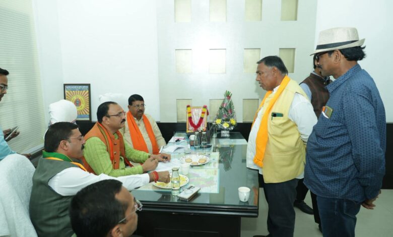 *रायपुर।* भाजपा प्रदेश कार्यालय कुशाभाऊ ठाकरे परिसर में सहयोग केन्द्र में कार्यकर्ताओं के आवेदनों का लगातार निराकरण हो रहा है। बुधवार को सहयोग केन्द्र में स्वास्थ्य मंत्री श्यामबिहारी जायसवाल ने कार्यकर्ताओं के कई आवेदनों का तत्काल निराकरण किया एवं अन्य आवेदनों को संबंधित विभागों में शीघ्र निराकरण करने के लिए भेजा। सहयोग केन्द्र में आज अलग-अलग जिलों से लगभग 100 से अधिक कार्यकर्ता पहुंचे। इस दौरान सहयोग केन्द्र प्रभारी सच्चिदानंद उपासने, प्रदेश कोषाध्यक्ष राम गर्ग, प्रदेश सह कार्यालय मंत्री प्रीतेश गांधी, छत्तीसगढ़ राज्य पिछड़ा वर्ग आयोग के अध्यक्ष नेहरू निषाद उपस्थित रहे।