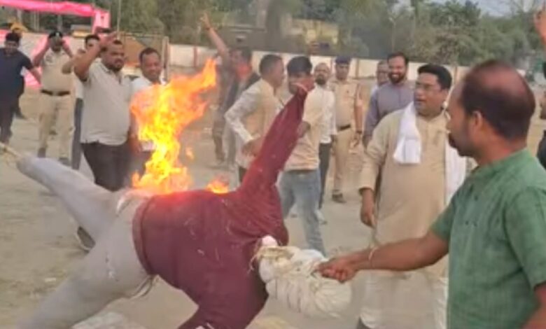 *गैस की मूल्य वृद्धि नशा खोरी के विरोध में कांग्रेस ने किया पुतला दहन*