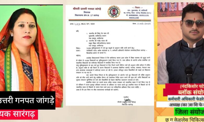 सारंगढ़ क्षेत्र के मर्ज स्कूलों को अनुदान दिलाने विधायक उत्तरी गणपत जांगड़े की पहल — ब्लॉक संयोजक नंदकिशोर पटेल ने जताया आभार”