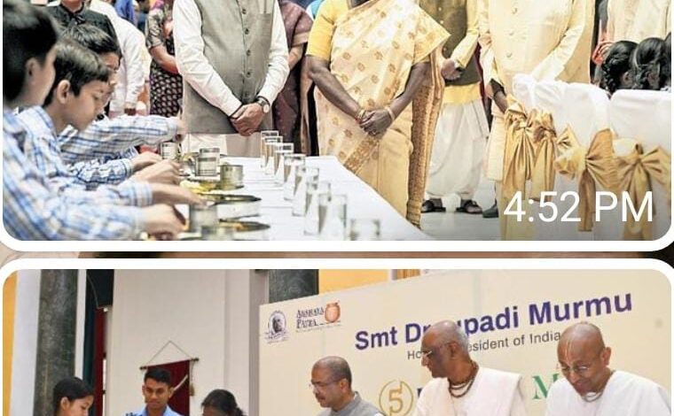 दिल्ली/रायपुर अक्षय पात्र ने 5 अरब भोजन परोसने का मील का पत्थर हासिल किया और नई दिल्ली के राष्ट्रपति भवन सांस्कृतिक केंद्र में मानवता की सेवा के 25 वर्ष पूरे किए। भारत की माननीय राष्ट्रपति श्रीमती द्रौपदी मुर्मू इस कार्यक्रम की मुख्य अतिथि थीं और माननीय शिक्षा मंत्री धर्मेंद्र प्रधान विशिष्ट अतिथि थे। यह कार्यक्रम अक्षय पात्र के संस्थापकों – इस्कॉन बैंगलोर के अध्यक्ष मधु पंडित दास और उपाध्यक्ष श्री चंचलपति दास की गरिमामय उपस्थिति में आयोजित किया गया।