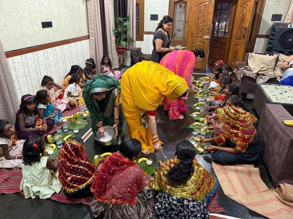 देवी स्वरूपा कन्याओं को कराया गया छप्पन भोग का भोजन