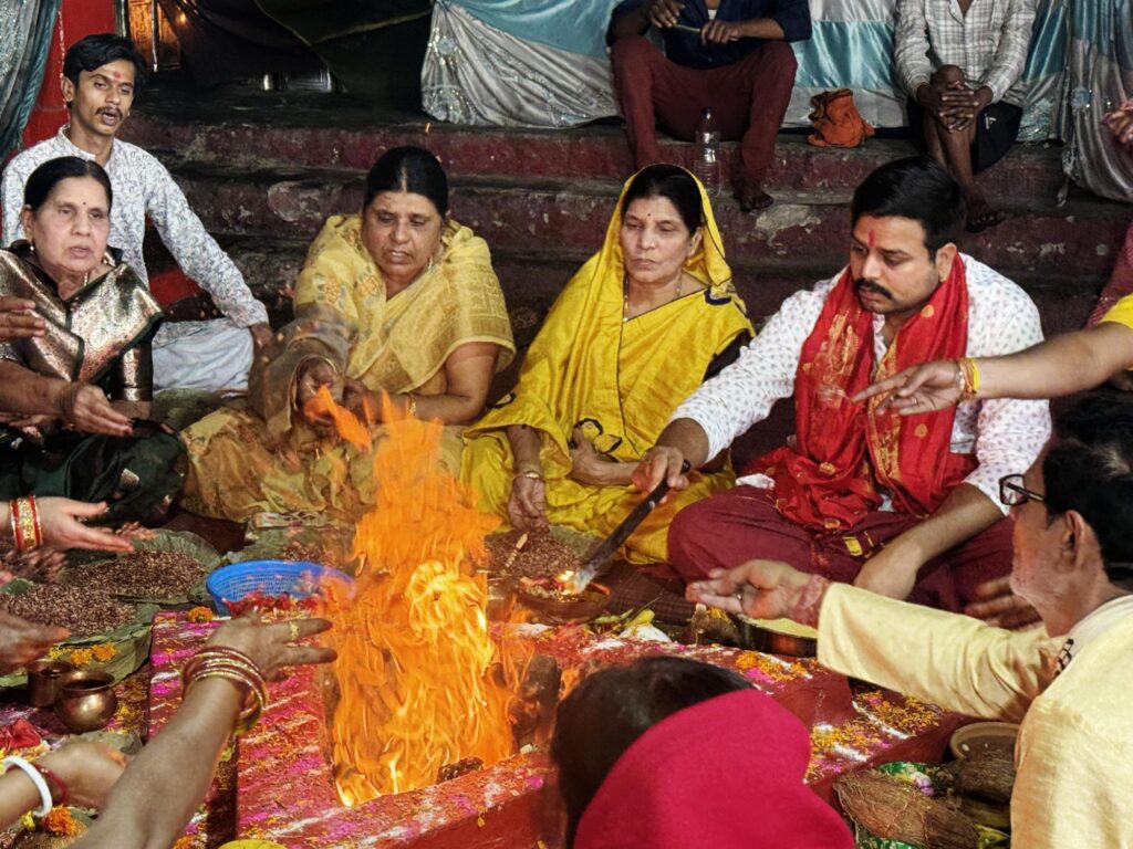 किसी भी आध्यात्मिक कार्यक्रमों को संपन्न करने विधि-विधान से हवन की रीति है। हवन के बाद ही सभी देवी-देवताओं का पूजन सम्पूर्ण होता है और देवी-देवता प्रसन्न होकर भक्तों को शुभ आशीर्वाद देते हैं। माँ सर्वमंगला देवी मंदिर में 9 दिन की नवरात्रि में राजपुरोहित नमन पाण्डेय (नन्हा महराज) ने विश्व कल्याण की कामना के साथ हवन-पूजन सम्पन्न किया और सभी के लिए शुभता का संदेश देते हुए कहा कि हे माता रानी! विश्व का कल्याण करें और चर-अचर प्राणियों में सद्भाव का संचार हो। विश्व में शांति हो और सभी का जीवन सुलभ और सरल हो। सभी भक्तों का कल्याण हो और पाप नाशिनी माँ सर्वमंगला देवी सभी के जीवन को आलोकित करती रहें। समाज से तामसिक प्रवृत्ति का नाश हो और नारी शक्ति का सम्मान हो। सनातन धर्म की विजय हो और विश्व का कल्याण हो।