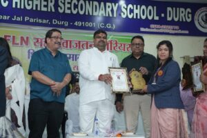 बरमकेला//विकासखंड कार्यालय बरमकेला के पीएम श्री विद्यालय केंदवाही बार एवं सरिया के शिक्षिकाओं को एफ. एल. एन. सह नवाजतन वारिस शिक्षक के रूप में राज्य स्तर पर सम्मानित किया गया ।विदित हो कि छत्तीसगढ़ सरकार द्वारा शिक्षा के क्षेत्र में उत्कृष्ट कार्य करने वाले शिक्षक- शिक्षिकाओं को राज्य स्तर पर सम्मानित किया जा रहा है ।ताकि अन्य विद्यालय को प्रेरित किया जा सके ।और छत्तीसगढ़ के सरकारी विद्यालय के बच्चों को उत्कृष्ट शिक्षा दी जा सके। एफ. एल. एन.नवाजतन शिक्षक सम्मान के लिए राज्य से वेब लिंक के माध्यम से सभी शिक्षकों को अपनी शालाओं में की जा रही गतिविधियों का अवलोकन किया जाता है। एस. सी.आर .टी के राज्य टीम द्वारा विभिन्न प्रश्न के माध्यम से शिक्षक का साक्षात्कार किया गया। और राज्य के 100 शिक्षकों का चयन एफ एल एन सह नवाजतन वॉरियर्स शिक्षक सम्मान दिया गया ।दुर्ग जिला में आयोजित कार्यक्रम में शिक्षा मंत्री गजेंद्र यादव जी ने पीएम श्री विद्यालय केंदवाही बार एवं सरिया के शिक्षिकाओं किरण सिदार एवं परमेश्वरी भोय को प्रशस्ति पत्र एवं मोमेंटो देकर सम्मानित किया गया । बरमकेला ब्लॉक के क्षेत्रीय शिक्षक शिक्षिकाओं में हर्ष व्याप्त है।