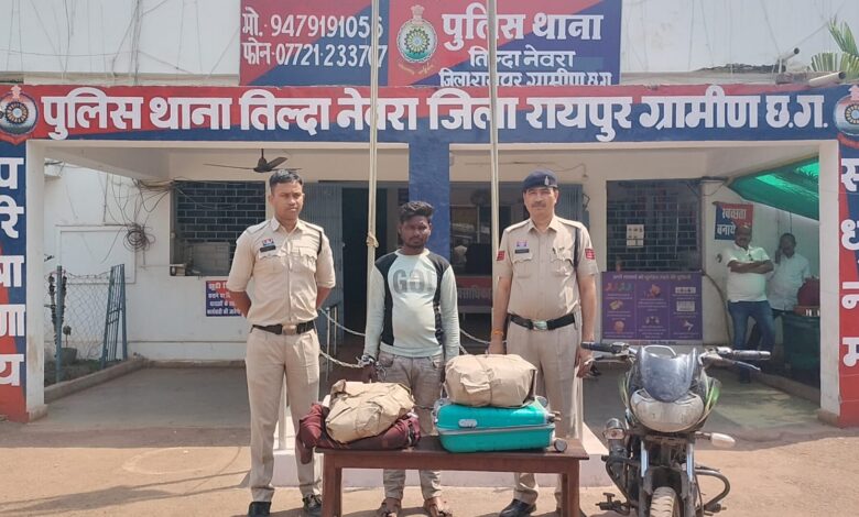 पुलिस से मिली जानकारी के अनुसार, थाना तिल्दा नेवरा को मुखबिर से सूचना मिली थी कि एक मोटरसाइकिल (सीजी 04 डीआर 5280) में दो व्यक्ति सूटकेस और बैग में गांजा लेकर खरोरा से तिल्दा होते हुए सांकरा की ओर जा रहे हैं। सूचना के आधार पर पुलिस टीम ने जोता रेलवे फाटक के पास घेराबंदी की।जैसे ही संदिग्ध मोटरसाइकिल वहां पहुंची, पुलिस को देखकर पीछे बैठा व्यक्ति कूदकर भाग निकला, जबकि चालक को मौके पर ही पकड़ लिया गया। तलाशी के दौरान उसके पास से 8.5 किलो गांजा बरामद किया गया, जिसकी अनुमानित कीमत 4 लाख 25 हजार रुपये बताई जा रही है। साथ ही घटना में प्रयुक्त मोटरसाइकिल भी जब्त की गई।