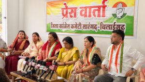 कांग्रेस महिला आरक्षण की प्रबल समर्थक है। इस प्रेस वार्ता में सूर्य कुमार तिवारी, विनोद भारद्वाज, अनिका भारद्वाज, सोनी अजय बंजारे, पुरुषोत्तम साहू, राधेश्याम जायसवाल, उमेश केसरवानी, मंजू आनंद, रामनाथ सिदार, पूर्व जिला कांग्रेस अध्यक्ष अरुण मालाकार के साथ ही साथ अन्य कांग्रेसी नेता उपस्थि