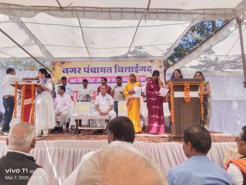 प्राप्त समाचार के अनुसार नगर पंचायत बिलाईगढ़ में आज नवनिर्वाचित अध्यक्ष दामोदर दुबे एवं पार्षद गणों का शपथ ग्रहण समारोह छत्तीसगढ़ राज्य के गौ सेवा आयोग के पूर्व अध्यक्ष महंत राम सुंदर दास महंत जी के मुख्य आतिथ्य में संपन्न हुआ । बिलाईगढ़ के एस डी एम वर्षा बंसल ने सर्वप्रथम नगर पंचायत अध्यक्ष दामोदर दुबे को तत्पश्चात सभी पार्षदों को शपथ दिलाया । गौ सेवा आयोग के पूर्व अध्यक्ष महंत रामसुंदर दास ने राम राज्य की कल्पना करते हुए अपने संबोधन में कहा कि दामोदर दुबे जी को आप सभी ने बहुमत के साथ जीताकर नगर पंचायत बिलाईगढ़ का अध्यक्ष बनाया है मैं विश्वास व्यक्त करता हूं कि दामोदर दुबे जी हमेशा आप सभी को साथ लेकर नगर पंचायत बिलाईगढ़ के सर्वांगीण विकास के लिए कार्य करेंगे ।