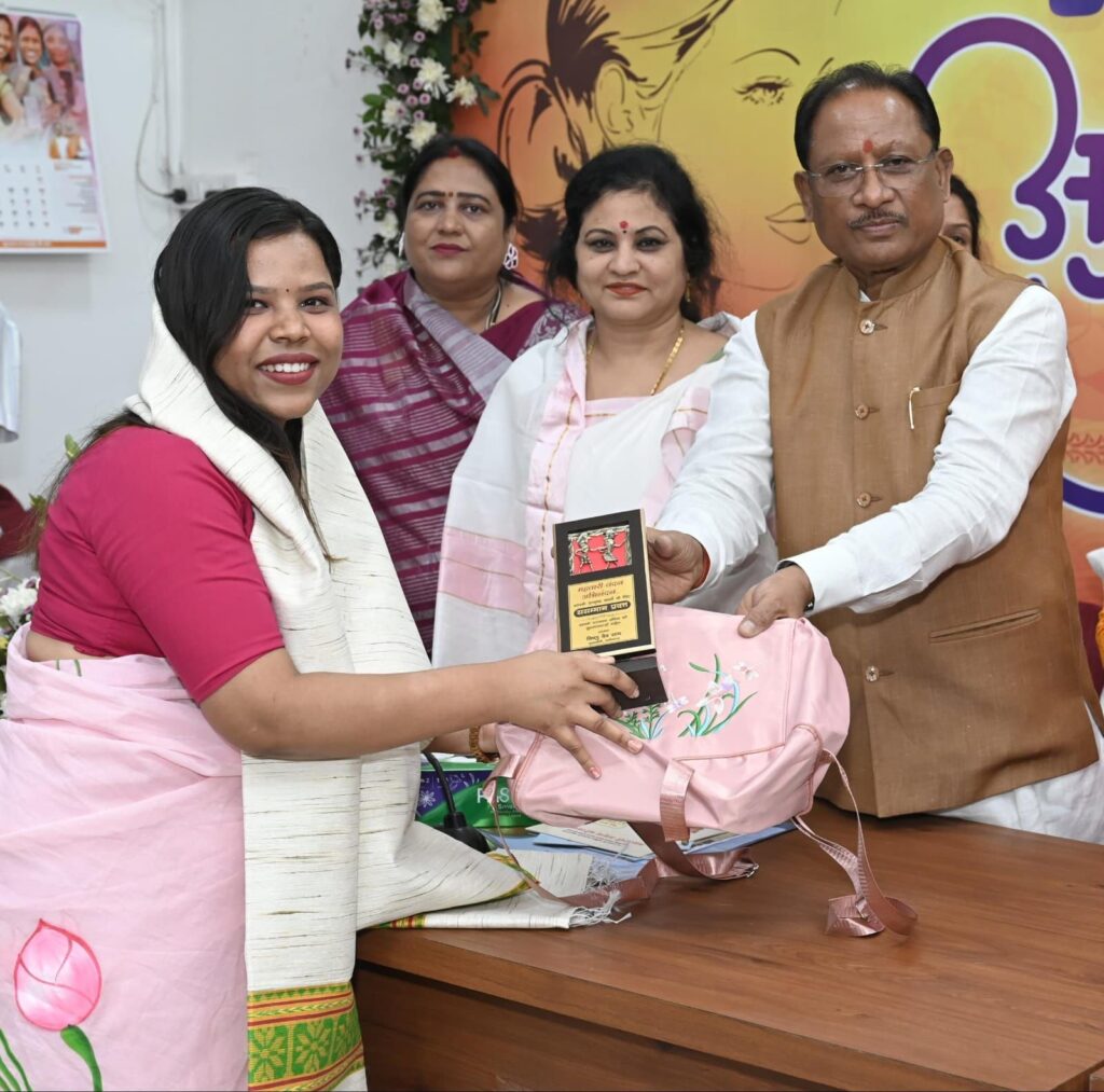 मुख्यमंत्री साय ने जनसंपर्क विभाग की अपर संचालक हर्षा पौराणिक, संयुक्त संचालक अंजू नायक, उप संचालक श्रुति ठाकुर, सहायक संचालक डॉ. दानेश्वरी संभाकर, सहायक संचालक संगीता लकड़ा, सहायक सूचना अधिकारी वर्षा ठाकुर को उत्कृष्ट कार्य के लिए सम्मानित किया। मुख्यमंत्री साय ने कहा कि जनसंपर्क विभाग की महिला अधिकारियों ने राज्य सरकार की योजनाओं, विकास कार्यों और जनकल्याणकारी नीतियों को प्रभावी रूप से जनता तक पहुँचाने में महत्वपूर्ण योगदान दिया है। उनकी प्रतिबद्धता और कार्यशैली ने संचार को अधिक प्रभावी और जनहितकारी बनाया है।