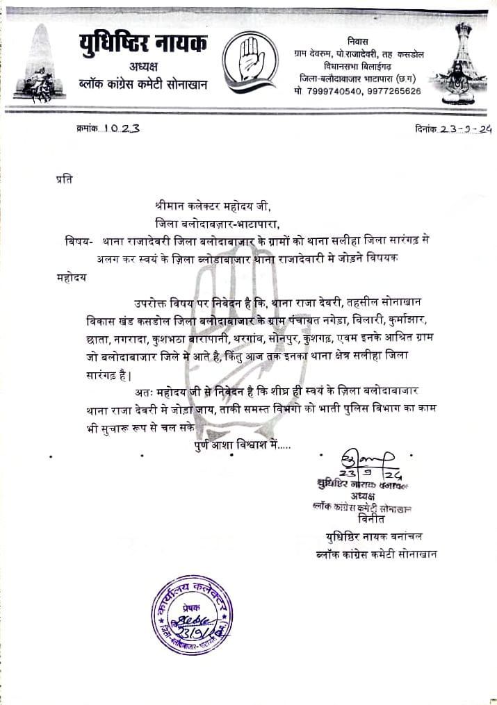 ब्लॉक कांग्रेस कमेटी सोनाखान के अध्यक्ष युधिष्ठिर नायक ने बताया कि, हमने कई दफा एसपी कार्यालय व कलेक्टर कार्यालय में लिखित सूचना दी है, पर आज तक यह समस्या का समाधान नहीं हो पाया है, क्षेत्र के आमजन पूरी तैयारी मे क्षेत्रीय विधायक कविता प्राण लहरे के साथ, मान मुख्यमत्री, गृहमंत्री से मिलने विधानसभा में जाने की तैयारी कर रहे हैं, और हमारी जन हित मांग तत्काल पूर्ण होनी चाहिए अन्यथा विधान सभा में ही अनशन में बैठा जायेगा l
