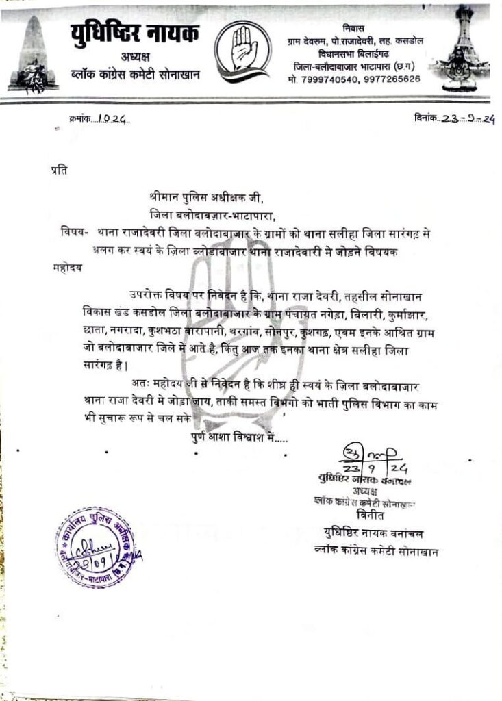 प्राप्त समाचार के अनुसार सारंगढ़ बिलाईगढ़ जिला को अस्तित्व में लगभग 1 साल से भी अधिक का समय व्यतीत हो चुका है किंतु वनांचल क्षेत्र में पुलिस विभाग अभी तक अलग नही हुआ है। बिलाईगढ़ विधानसभा क्षेत्र के सोनाखान अंचल के कई पंचायत बिलारी, कुर्माझर, नगरदा, छाता, थरगांव, कुसगढ़, सोनपुर, बरपानी, कुशभाटा, आदि पंचायत व कई गांव पुलिस थाना सालिहा जिला सारंगढ़ बिलाईगढ़ में जुड़े हुआ है, जबकि इनका राजस्व जिला बलौदाबाजार भाटापारा है, एवम थाना राजा देवरी में जुड़नी चाहिए, क्षेत्रीय जन प्रतिनिधियों द्वारा कई बार एस पी एवं कलेक्टर महोदय को भी अवगत कराया जा चुका है, फिर भी इस गंभीर समस्या पर किसी का ध्यान आकर्षित नहीं हो रहा है, क्षेत्र के आमजन, किसान मजदूर, कर्मचारी सब इस समस्या से पीड़ित हैं,