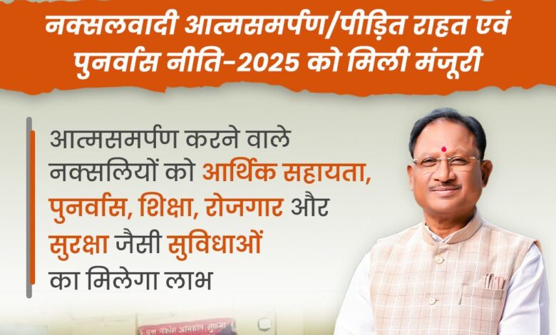 छत्तीसगढ़ सरकार ने नक्सल समस्या के समाधान की दिशा में एक महत्वपूर्ण कदम उठाया है। हाल ही में कैबिनेट की बैठक में छत्तीसगढ़ नक्सलवाद उन्मूलन नीति-2023 को हटाकर छत्तीसगढ़ नक्सलवादी आत्मसमर्पण, पीड़ित राहत एवं पुनर्वास नीति-2025 को मंजूरी दी गई है।