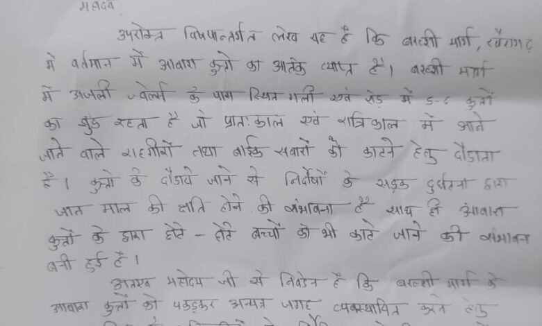 बक्सी मार्ग में आवारा कुत्तों के आतंक से नागरिक परेशान, जिलाधीश से शिकायत
