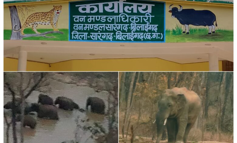सारंगढ़ गोमार्ड अभयारण्य में 26 हाथियों का दल पहुंचा, वन विभाग अलर्ट