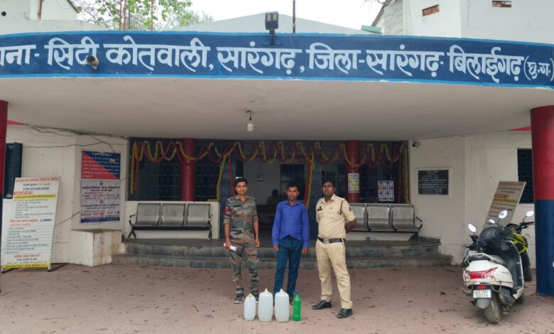 सारंगढ़ बिलाईगढ़ पुलिस अधीक्षक पुष्कर शर्मा, अति0 पुलिस अधीक्षक निमिषा पाण्डेय एवं एसडीओपी स्नेहिल साहू के द्वारा अवैध शराब बिक्री की रोकथाम हेतु लगातार निर्देशित किये जाने पर थाना प्रभारी कोतवाली निरीक्षक कामिल हक के कुशल मार्ग दर्शन में थाना सिटी कोतवाली सारंगढ़ के पुलिस स्टॉफ द्वारा अवैध शराब बिक्री पर कार्यवाही कर अप0क्रं0- 129/2025 धारा- 34(2)59(क) आबकारी एक्ट पंजीबद्ध किया गया।