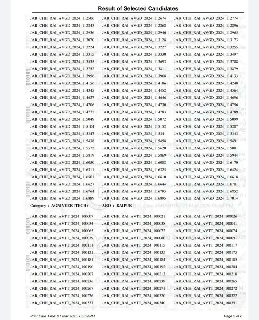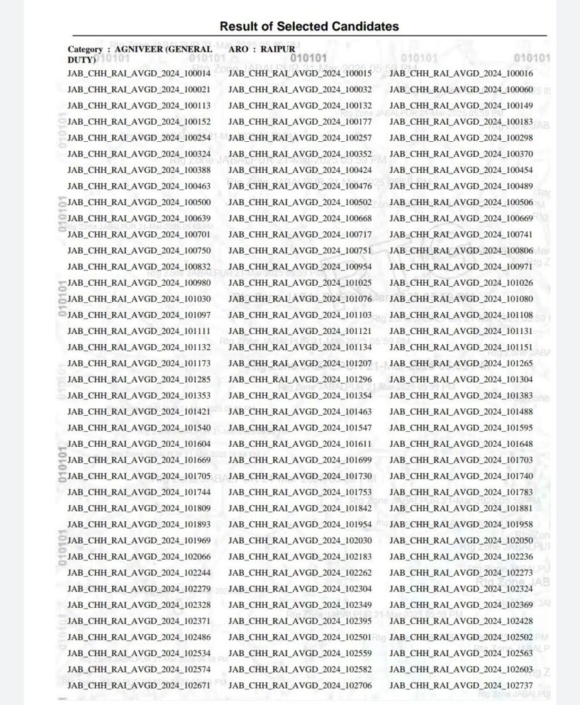 *रायगढ़ में आयोजित अग्निवीर भर्ती रैली का परिणाम हुआ घोषित*