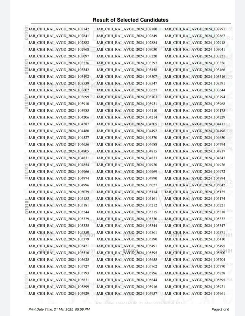 सारंगढ़ बिलाईगढ़, 21 मार्च 2025/ छत्तीसगढ़ राज्य के युवाओं के लिए रायगढ़ में 4 से 12 दिसंबर 2024 तक आयोजित अग्निवीर भर्ती रैली का परिणाम घोषित किया गया। इसमें जनरल ड्यूटी, टेक्निकल, ट्रेडसमैन की श्रेणी शामिल है। चयनित अभ्यथि इस साल भारतीय सेना में अग्निवीर बनकर देश की सेवा करेंगे। यह परिणाम सेना की वेबसाइट जॉइन इंडियन आर्मी डॉट एनआईसी डॉट इन (www.joinindianarmy.nic.in) पर उपलब्ध होगा और सेना भर्ती कार्यालय रायपुर के नोटिस बोर्ड पर भी प्रदर्शित किया जाएगा।