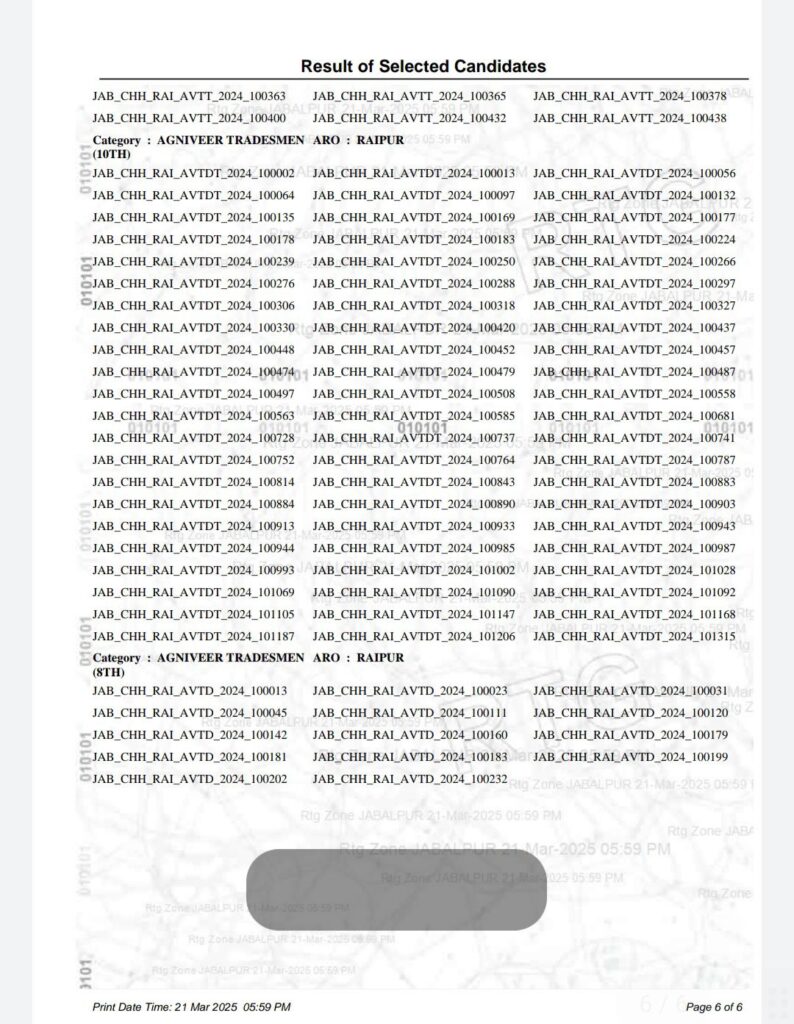 अग्निवीर (थल सेना) का फाइनल result…