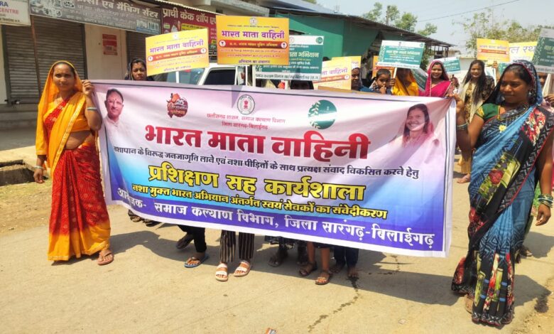 छत्तीसगढ़ शासन समाज कल्याण विभाग जिला सारंगढ़ बिलाईगढ़ द्वारा कलेक्टर धर्मेश कुमार साहू के निर्देशन में चलाए जा रहे नशा मुक्ति संबंधी जन जागृति अभियान में जिले के सारंगढ़ विकास खंड के ग्राम पंचायत लेंधरा में नशा मुक्त समाज निर्माण के लिए संचालित योजना भारत माता वाहिनी योजना में ग्राम पंचायतो में नशे के विरुद्ध व्यापक जनजागृति लाने के लिए नशा मुक्ति रथ के माध्यम से प्रचार प्रसार का कार्य का समापन और भारत माता वाहिनी समूह की रैली सह बैठक का आयोजन किया गया।