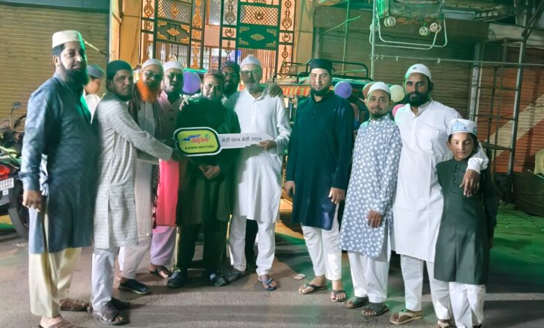 समाज के जरुरतमंद युवक और युवती को ई रिक्शा देने के दौरान मुस्लिम समाज जामा मस्जिद के सदर अरशद हुसैन डब्बू, नायब सदर जफर हुसैन खान, कदीर कुरैशी, सलीम सोलंकी, सुलेमान खान, हाजी रिज़वान मेमन, साबिर सरधारिया, हाजी ईमरान मेमन, रियाज़ अशरफी, इरफ़ान मेमन, उबैद खान, शारिक खान, जाफर झाड़ूदिया, इमरानुद्दीन कादरी व सादिक मोतीवाला सहित बड़ी संख्या में मुस्लिम समाज के सदस्य उपस्थित थे.