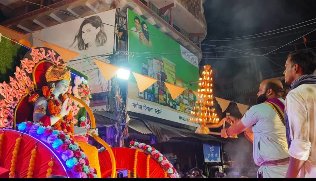 विदित हो कि – इस शोभा यात्रा की शोभा को बढ़ा रहे थे , आदमकद मर्यादा पुरुषोत्तम राम की प्रतिमा वहीं नटराज के रूप में शंकर भगवान की प्रतिमा जो लोगों के लिए आकर्षण का केंद्र बिंदु बनी हुई थी वहीं भव्य और विशाल शिवलिंग के साथ ही साथ नंदी महाराज का की प्रतिमा कि लोग पूजा कर रहे थे । यें सभी के सभी झांकियां अलग-अलग ट्रैक्टर पर सजाए गए थे जिसे सिर्फ नगरवासी नहीं अपितु आस पास के ग्रामीण अंचल के लोग भी देख कर मंत्रमुग्ध हो रहे थे । वही युवाओं के द्वारा हर चौक , चौराहे पर की जा रही आतिशबाजी भी लोगों के लिए आकर्षण का केंद्र बनी थी । शहर के हर वर्ग के द्वारा अलग अलग चौक में शोभा यात्रा में शामिल युवा युवती को ठंडा , मीठा, चाय नाश्ता करवाया जा रहा था ।शोभा यात्रा पुराना थाना से निकल सिनेमा हॉल चौक होते हुए नगर के मुख्य मार्ग में घूमते हुए, बस स्टैंड मार्ग से होकर , आजाद चौक से जय स्तंभ चौक पश्चात नंदा चौक पहुंची , जहां मर्यादा पुरुषोत्तम राम की भव्य आरती गोपाल जी मंदिर छोटे मठ के महंत बंशीधर दास मिश्रा के द्वारा किया गया । जिस महाआरती को देखने के लिए हजारों की संख्या में लोग घरों के मुंडेर में खड़े होकर महाआरती को देख रहे थे नंदा चौक में ही बराई (थवाईत) महिला समिति द्वारा शोभा यात्रा में शामिल सभी को बूंदी प्रसाद ठंडा और ठंडा जल दिया जा रहा था ।