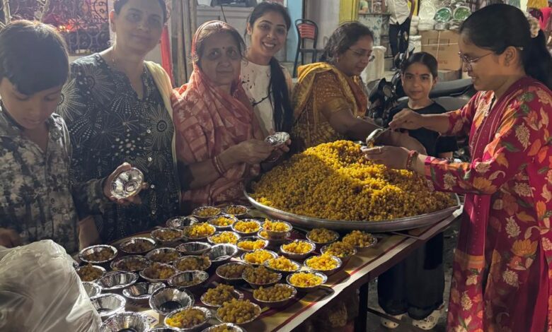 *जय स्तंभ चौक में लगी सवामणि बूंदी का प्रसाद*
