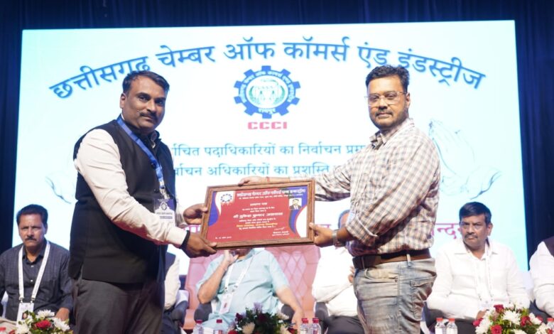 बरमकेला । छग चेम्बर आफ कामर्स एंड इंडस्ट्रीज के नव निर्वाचित पदाधिकारियों का चेम्बर भवन रायपुर में शपथ ग्रहण समारोह आयोजित किया गया । इस समारोह के मुख्य अतिथि मुख्यमंत्री विष्णु देव साय, विधानसभा अध्यक्ष डॉ.रमन सिंह , पूर्व राज्यपाल रमेश बैस, सांसद बृजमोहन अग्रवाल के विशेष आतिथ्य में शपथ ग्रहण संपंन हुआ । जिला सारंगढ बिलाईगढ़ से नव निर्वाचित प्रदेश उपाध्यक्ष मुकेश अग्रवाल को भी शपथ दिलायी गई । इस मौके पर बरमकेला चेम्बर कामर्स के अध्यक्ष रतन शर्मा, प्रदेश मंत्री दिनेश शर्मा, महामंत्री कैलाश गोयल, अधिवक्ता रामेश्वर बारीक़ विशेष रूप से मौजूद रहे। जिले से छग चेम्बर में प्रदेश पदाधिकारी के रूप में एकमात्र मुकेश अग्रवाल का ही चयन किया गया है गरिमामय एवं भव्य कार्यक्रम में शपथ ग्रहण किये । इसे बरमकेला चेम्बर ऑफ़ कामर्स इकाई की बड़ी उपलब्धि मानी जा रही है।जिसमे रतन शर्मा एवं बरमकेला टीम का बड़ा योगदान रहा है।गौर तलब है कि बरमकेला इकाई के द्वारा किये गए कार्यों के कारण पूरे प्रदेश में अलग पहचान है । बरमकेला के अध्यक्ष रतन शर्मा ने सभी चेम्बर सदस्यों का आभार जताते धन्यवाद ज्ञापित किये ।