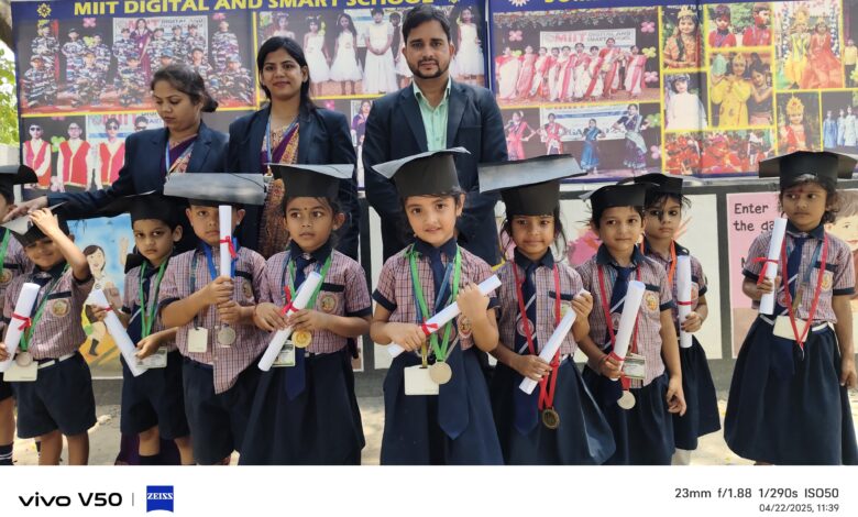 बरमकेला । विकास खंड के मीत डिजिटल एंड स्मार्ट स्कूल में दिनांक 22अप्रैल 25 क़ो ग्रेजुएशन डे एवं ग्रीष्म कालीन विदाई कार्य क्रम का आयोजन किया गया । जिन छात्र-छात्राओं ने सत्र 24 – 25 के वार्षिक परीक्षा में प्रथम, द्वितीय एवं तृतीय स्थान प्राप्त किये हैँ, उन सभी बच्चों क़ो कक्षा शिक्षक-शिक्षिकाओं द्वारा मेडल व सर्टिफिकेट प्रदान किया । जिसमें रतन शर्मा बबली शर्मा के पुत्र अंकित शर्मा सीमा शर्मा के पुत्री अनमोल शर्मा को मेडल व सर्टिफिकेट प्रदान किया गया । जिसमें अनमोल शर्मा बहुत ही खुश नजर आ रही थी । सभी बच्चों के लिए स्कूल में स्वल्पाहार कि व्यवस्था की गयी थी । प्रोग्राम के चलते सभी बच्चे बहुत ख़ुश थे लेकिन साथ ही लगभग 2 माह स्कूल से दूर होने से पीड़ा आँखों से झलक रही थी । प्राचार्य मनोज पटेल तथा उपप्राचार्य यादराम नायक ने सभी बच्चों क़ो ग्रीष्मकाल में घर में रहकर पढ़ाई करने, अपने स्वास्थ्य पर विशेष ध्यान देने की नसीहत दी I एकाडमिक प्रमुख महेन्द्र सिक्का ने सभी बच्चों क़ो अगले साल और मेहनत कर प्रथम, द्वितीय एवं तृतीय स्थान में जगह बनाने हेतु प्रेरित किया I