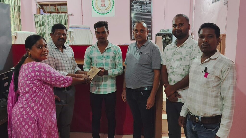 इसी क्रम में सुशासन तिहार अंतर्गत तरुण डनसेना निवासी अमोदा द्वारा ऋण पुस्तिका (किसान किताब) हेतु आवेदन प्रस्तुत किया गया था जिसे तत्काल शनि राम पैंकरा तहसीलदार द्वारा हल्का पटवारी को बुलाकर अभिलेखों का अवलोकन कर पाया गया है कि उनको किसान किताब उपलब्ध नहीं हो पाया था। आवेदक को बुलाकर किसान किताब प्रदान किया गया। लंबे इंतजार के पश्चात ऋण पुस्तिका प्राप्त होते ही तरुण डनसेना के चेहरे पर संतोष और प्रसन्नता साफ झलक रहा था। उन्होंने समाधान मिलते ही मुख्यमंत्री विष्णुदेव साय के प्रति कृतज्ञता प्रकट करते हुए शासन की त्वरित कार्यप्रणाली की सराहना किया।इस अवसर पर शनि राम पैंकरा तहसीलदार, देवमती आरआई बरमकेला,हेमसागर चौधरी आर आई, हरिश चौधरी पटवारी, सहनीराम सिदार आदि उपस्थित थे।